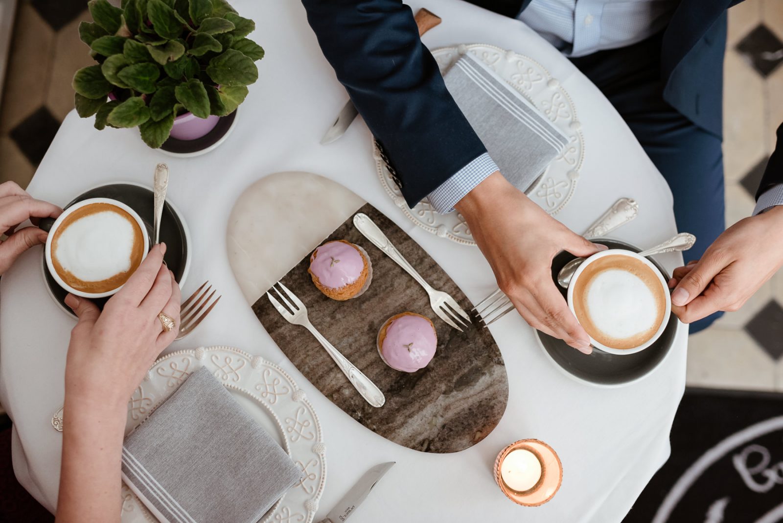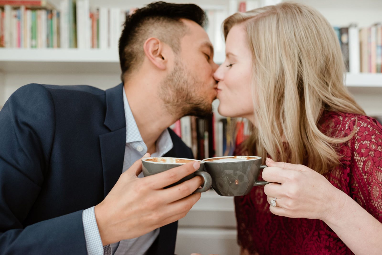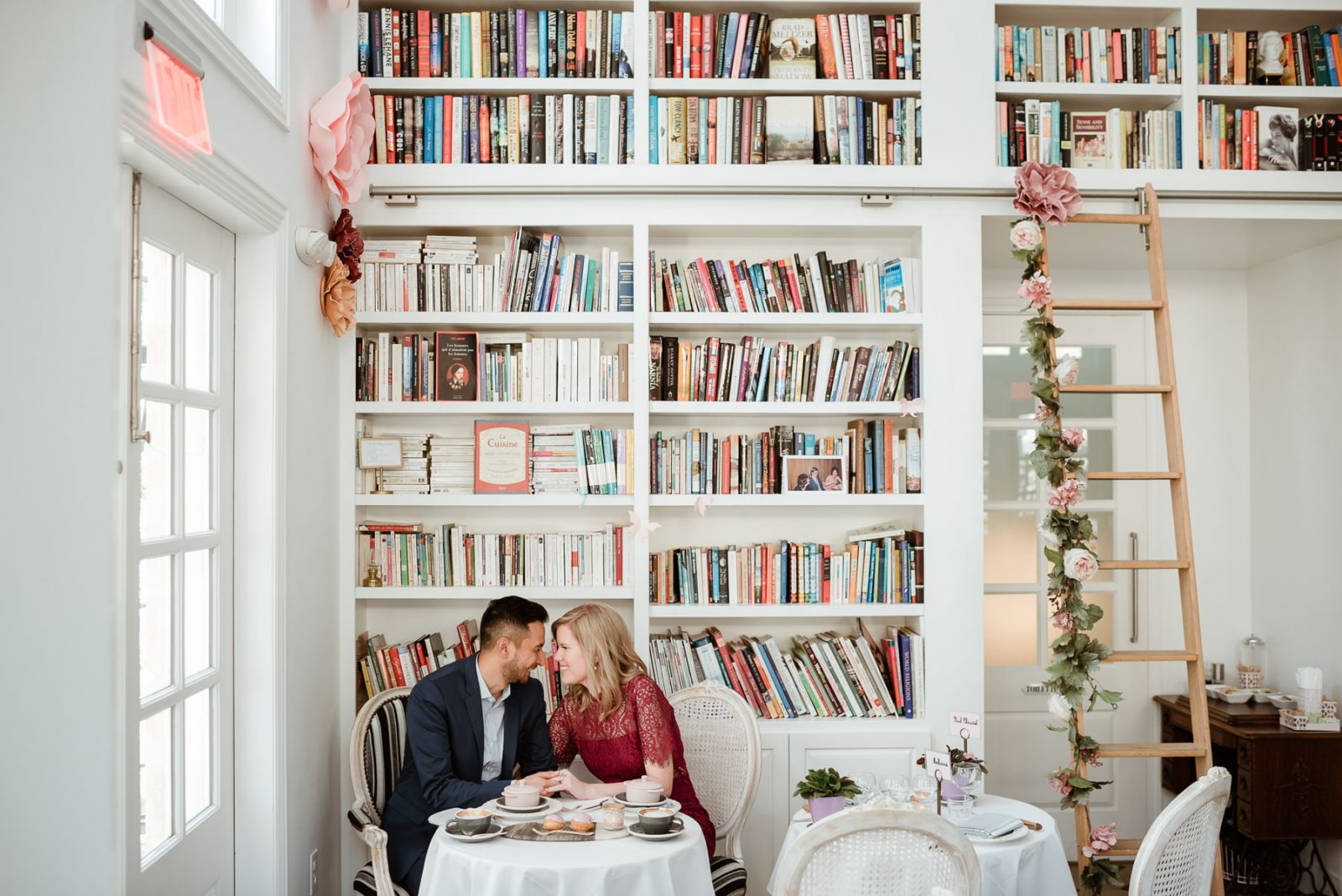 We headed over to a brand new location for Karen and Alfonso’s engagement session, and we totally fell in love with it! Café Poêtes is such a cute spot nestled in Midtown that serves amazing coffee and authentic French pastries. We had so much fun using all the little nooks and corners in the restaurant before heading downtown to finish their session on Main Street. These two were naturals, their session is so natural and fun!